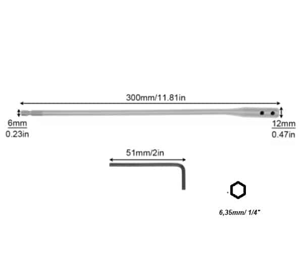 Extensión 12″ (300mm) Para Broca y Punta de Zanco Hexagonal 1/4″
