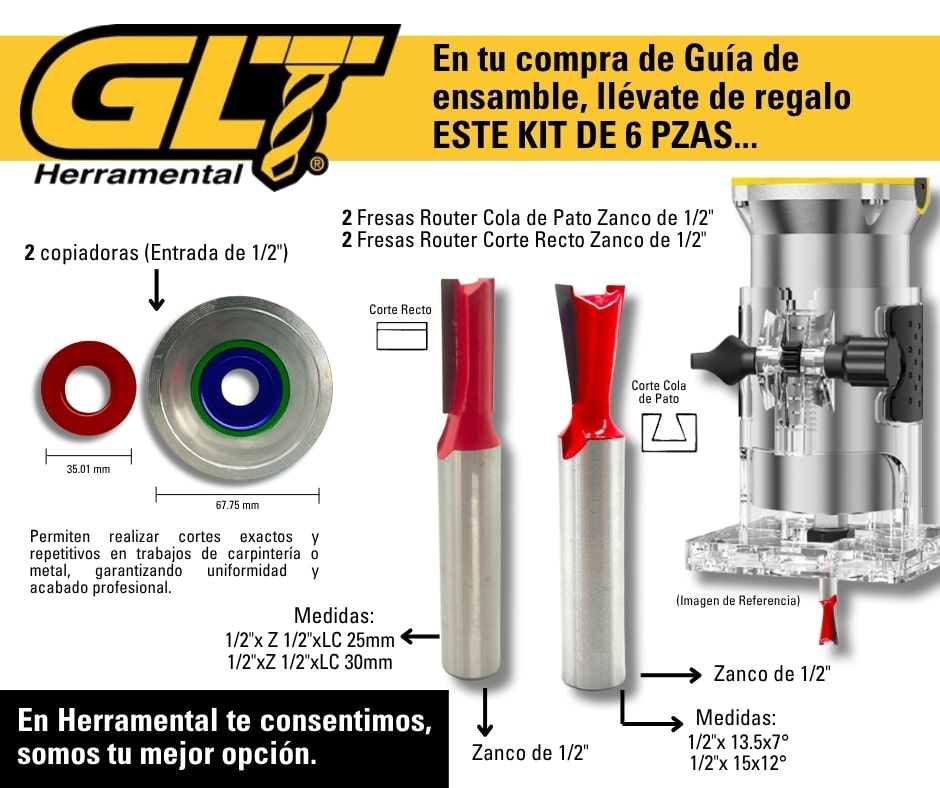 Esta forma de junta generalmente se utiliza para fabricar cajones para muebles y escritorios , si se utiliza esta guía y una fresa que coincida ambas mitades de de la junta se pueden cortar de manera simultanea dando como resultado un ajuste perfecto.