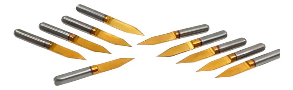 Su diseño en “V” permite cortes definidos y limpios sobre madera, plásticos, acrílico y metales suaves, con mayor durabilidad gracias al recubrimiento dorado.